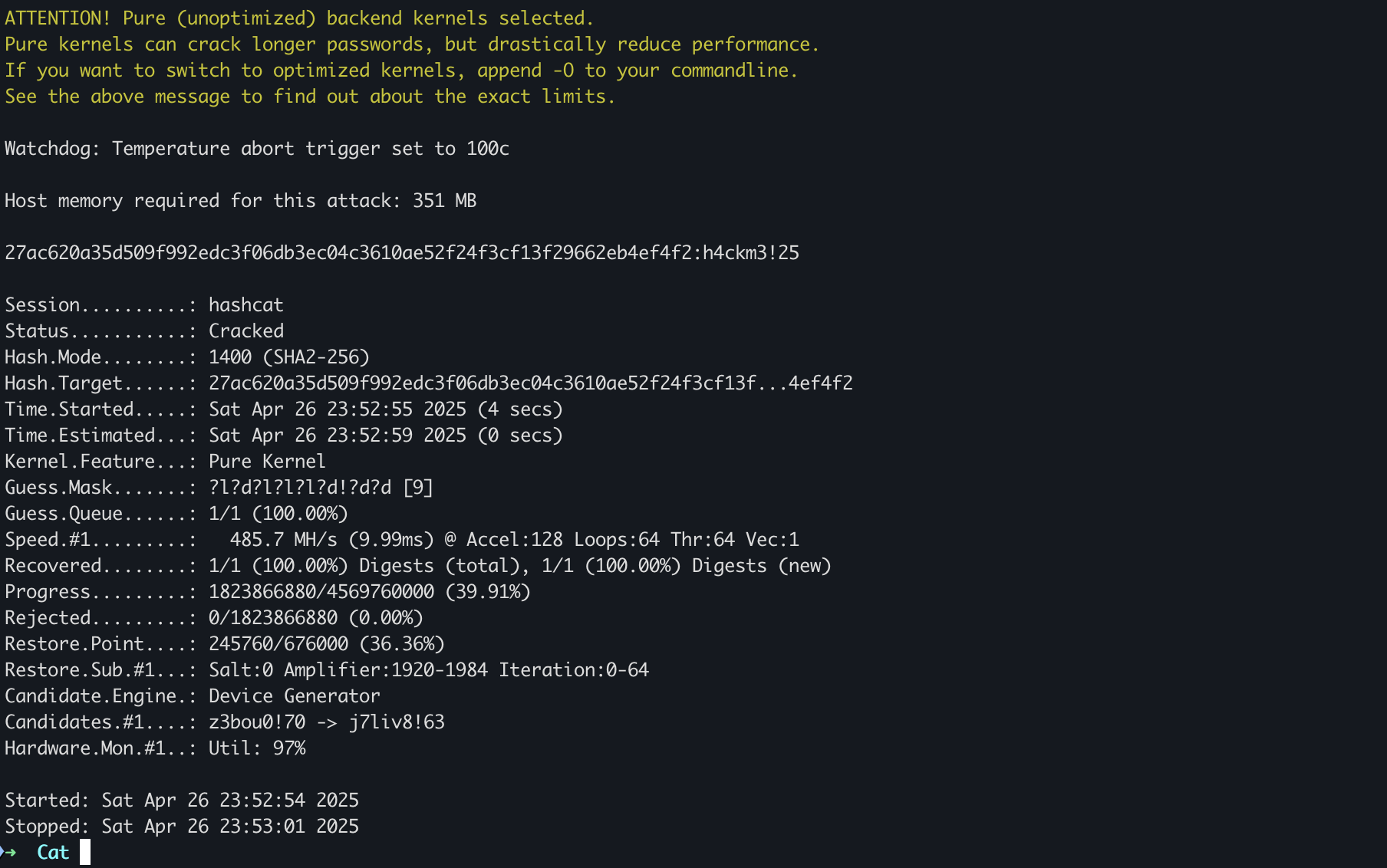 hashcat -a 3 -m 1400 hash.txt '?l?d?l?l?l?d!?d?d'
